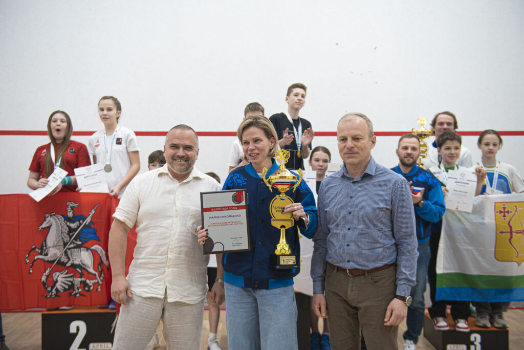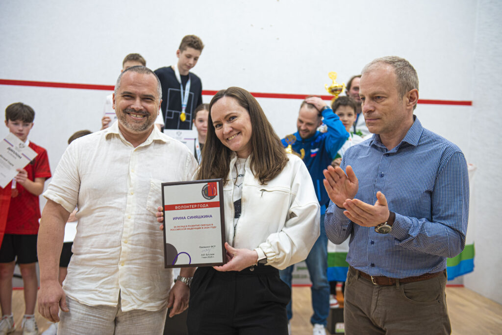 Заслуженные награды ФСР – Премии «Волонтёр года» – за вклад в развитие сквоша в Российской Федерации в 2024 году на церемонии закрытия Первенства России 2025 4 мая получили президент федерации сквоша Нижегородской области Мария Николаенко и активистка детского сквоша Ирина Синяшкина.