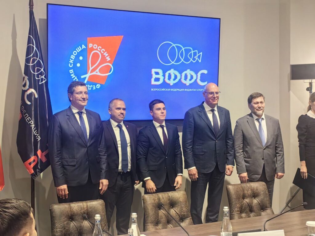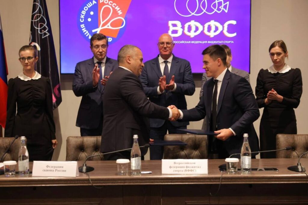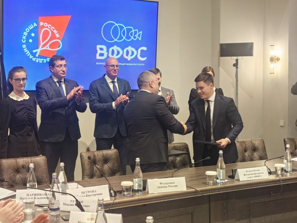 На совещании президенты Всероссийской федерации фиджитал спорта Никита Нагорный и Федерации сквоша России Артём Буслаев подписали соглашение о совместном развитии функционально-цифровой дисциплины вида спорта «сквош».