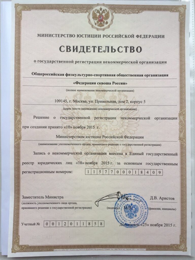 10 лет в темпе сквоша: 18 ноября 2015 года зарегистрирована ФСР